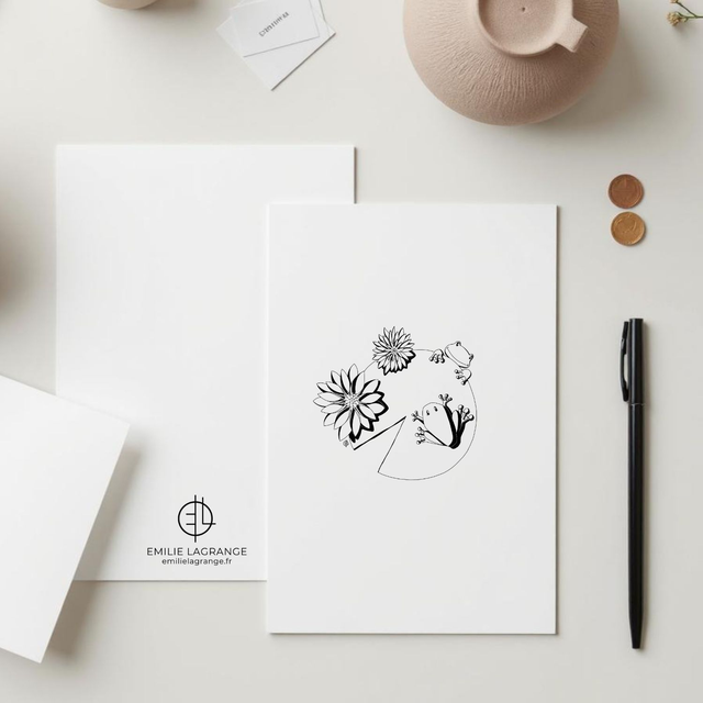 La carte postale "Crapaud" est une illustration aux lignes simples et épurés qui donne la part belle à votre message. Son esthétique en noir et blanc lui donne son aspect moderne qui s'intégrera ensuite facilement à la décoration de votre destinataire, pour un souvenir qui dure. Vous pouvez également choisir d'encadrer votre carte postale "Crapaud" pour une touche artistique dans votre intérieur.