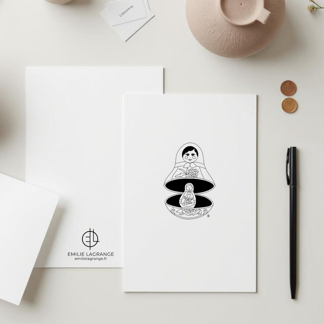 La carte postale "Ego" est une illustration aux lignes simples et épurés qui donne la part belle à votre message. Son esthétique en noir et blanc lui donne son aspect moderne qui s'intégrera ensuite facilement à la décoration de votre destinataire, pour un souvenir qui dure. Vous pouvez également choisir d'encadrer votre carte postale "Ego" pour une touche artistique dans votre intérieur.