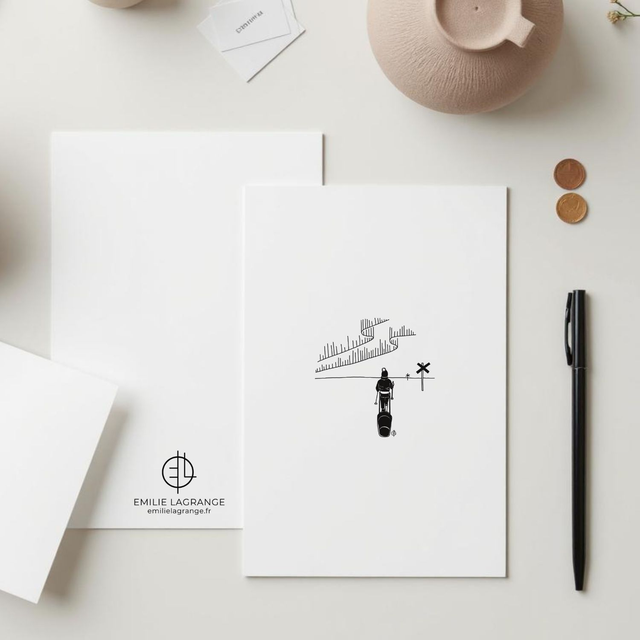 La carte postale "Expédition" est une illustration aux lignes simples et épurés qui donne la part belle à votre message. Son esthétique en noir et blanc lui donne son aspect moderne qui s'intégrera ensuite facilement à la décoration de votre destinataire, pour un souvenir qui dure. Vous pouvez également choisir d'encadrer votre carte postale "Expédition" pour une touche artistique dans votre intérieur.