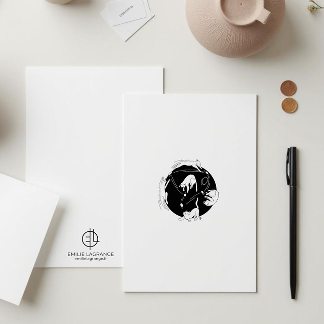 La carte postale "Rebondir" est une illustration aux lignes simples et épurés qui donne la part belle à votre message. Son esthétique en noir et blanc lui donne son aspect moderne qui s'intégrera ensuite facilement à la décoration de votre destinataire, pour un souvenir qui dure. Vous pouvez également choisir d'encadrer votre carte postale "Rebondir" pour une touche artistique dans votre intérieur.