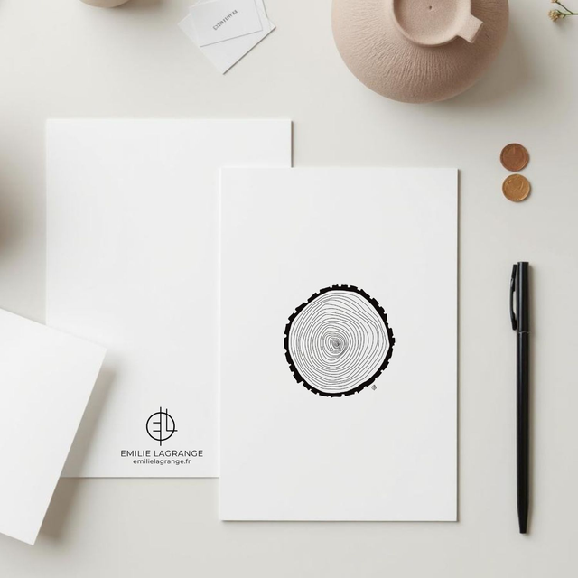 La carte postale "Tronc" est une illustration aux lignes simples et épurés qui donne la part belle à votre message. Son esthétique en noir et blanc lui donne son aspect moderne qui s'intégrera ensuite facilement à la décoration de votre destinataire, pour un souvenir qui dure. Vous pouvez également choisir d'encadrer votre carte postale "Tronc" pour une touche artistique dans votre intérieur.